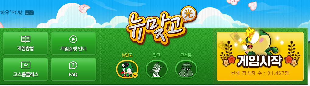 피망뉴맞고는 윈조이, 한게이과 함께 3대 맞고에 속하며 그 중에서도 가장 인기 인지도가 있는 게임이라 할 수 있겠습니다. 특히 패의 색감이 다른 게임회사의 고스톱 패보다 예쁘다는 평이고 음향효과도 좋아 사용자가 많은 편이라 할 수 있습니다. 특히 최근에 피망에서는 현재적인 터치로 피망 뉴맞고를 재탄생시켰습니다.